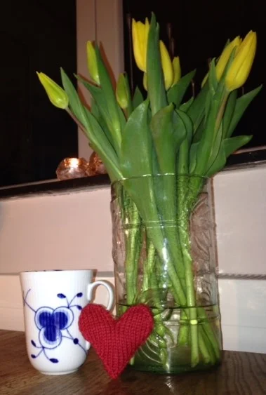 Today it's Valentine's Day, so this day shall naturally be marked with a special square for the new blanket that I started last month. In addition, I knitted a small heart to show my love for my husband!