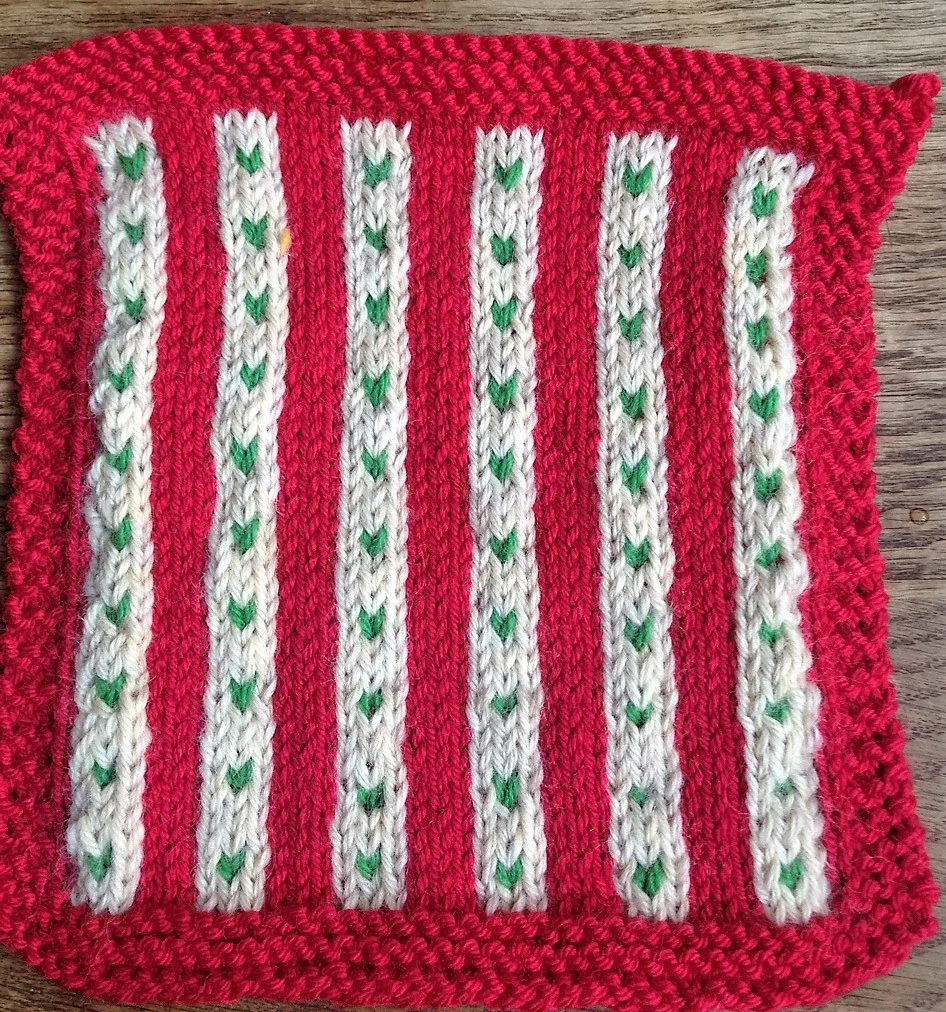 I work only in reds and greens with a few neutrals thrown in for my blanket, so the American flag is a bit adapted to fit my scheme, but it works, I think.